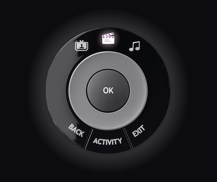 Three smart activities (Watch TV & Watch Movie & Listen to Music) offer seamless control of your devices without changing between device types. E.g. channel keys operate Set Top Box, volume keys operate Audio Receiver.
