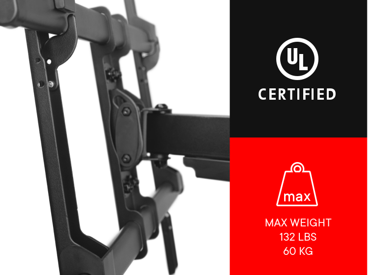 The SOLID line of wall mounts features a robust design that ensures optimal support of your valuable TV at all times. Cast from high-grade material, this sturdy wall mount will hold any TV weighting up to 154lbs.